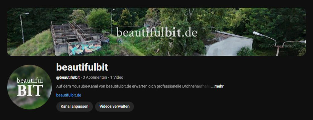 Natürlich gibt es auch noch einen YouTube Kanal passend zur Webseite beautifulbit.de. Dort werden Luftaufnahmen, Tests, Trailer und Referenzen veröffentlicht.